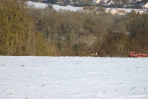 Après avoir traqué le Bois de Garenne et se dirigeant vers les épines noires, les traqueurs levèrent juste un chevreuil. Il fut tiré par Christian (raté) puis il descendit dans la “Garenne”. Je le vis passer à moins de 10m sans le tirer.